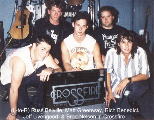 Thoroughbred slowly metamorphosed into Class-X, as we all started putting more emphasis on our Fifties and Sixties Rock covers. This was perfect for me; I'd grown up with all of those songs listening to my dad rehearse. It was also a shock for Ross, he remarked that I was the only nineteen-year-old in the state who knew the words to obscure Roy Orbison tunes. This band eventually broke up as Dave and Grant both took other jobs out of state. Ross went on to revive the Fabulous Chancellors, a band that had regional hits in the Pacific Northwest in the early Sixties. (return to band table) Crossfire:I