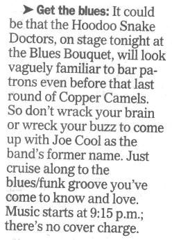 | The Idaho Statesman, Best Bets, date unknown. "Just cruise along to the blues/funk groove you've come to know and love..." |